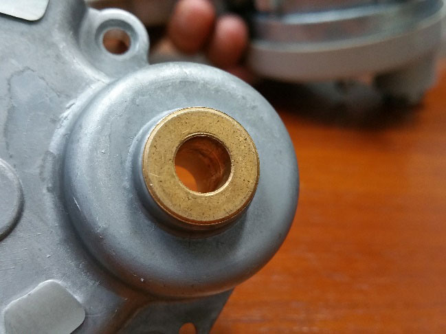 在某客户的小型齿轮箱,因为输出轴与烧结金属轴套的公差控制不严格,轴与轴套缝隙过大形成虹吸效应,在工作时会把油脂泵到外边,造成油脂外冒(如图)。在轴与轴套之间涂抹密封膏Gemini VP 469 Plus,消除缝隙和油脂的流体压差,破坏虹吸效应的条件,极大地缓解了油脂外冒的问题。